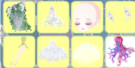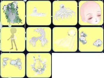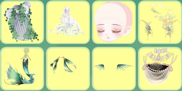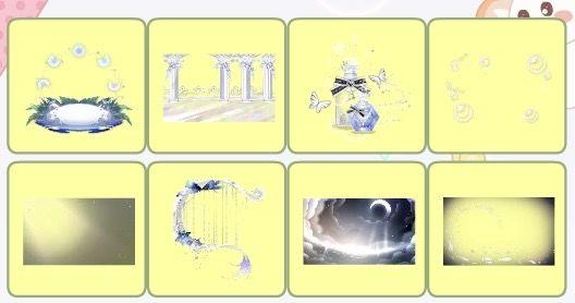 祷歌与泪残柱、祷歌与泪裙、浮世琉音短卷发、浮世琉音闭眼、童谣梦之幻术、守·碎晶守护铩羽、特洛伊恋歌头纱、夜莺白玫瑰、仙·睡莲精灵莲花、太阳神竖琴、