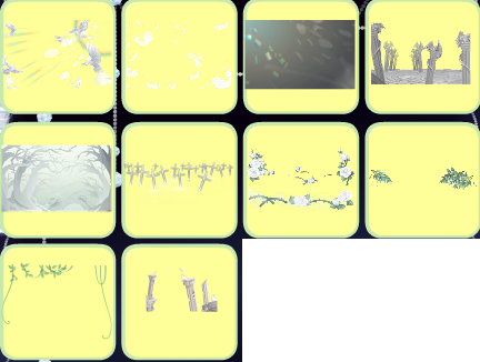 祷歌与泪光效、净·荆棘鸟鸟群、净·荆棘鸟笼群、净·荆棘鸟荆棘、鸣狐之绊雾森、鸣狐之绊天赐