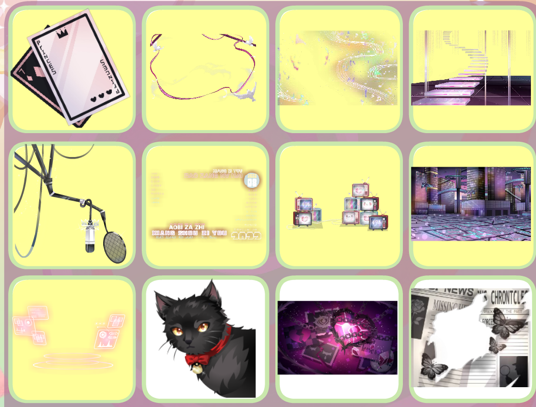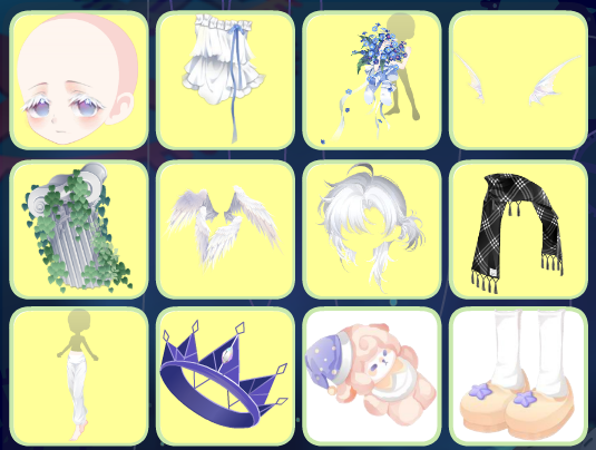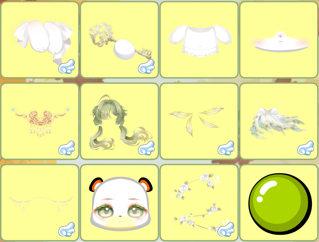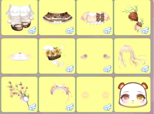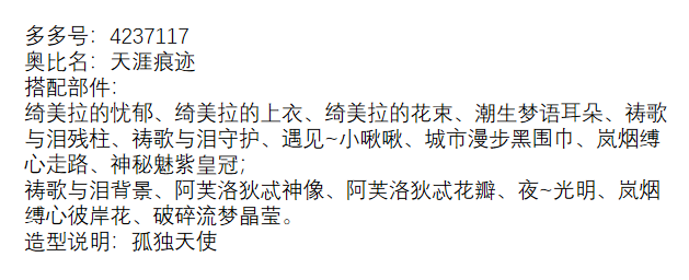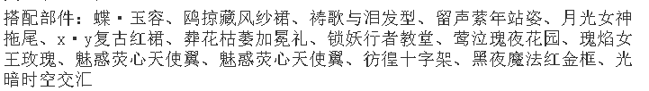 搭配部件:蝶•云团、梦•匙之咒、曜•绒绒体、恺恺厌世嘴、金蕊琼芳项链、枯荣•风起蔽目、枯荣•自在之人、枯荣•青衣逐海、神圣光辉之链、绿植梦灵表情、绿植梦灵藤蔓、松松暖绒落叶松、花漾幻庭蝴蝶、夏•煜煜生光、枯荣•萤灯似月、无常世界树影、雪夜际遇相遇、粉兔之家阳光、拇指姑娘森林