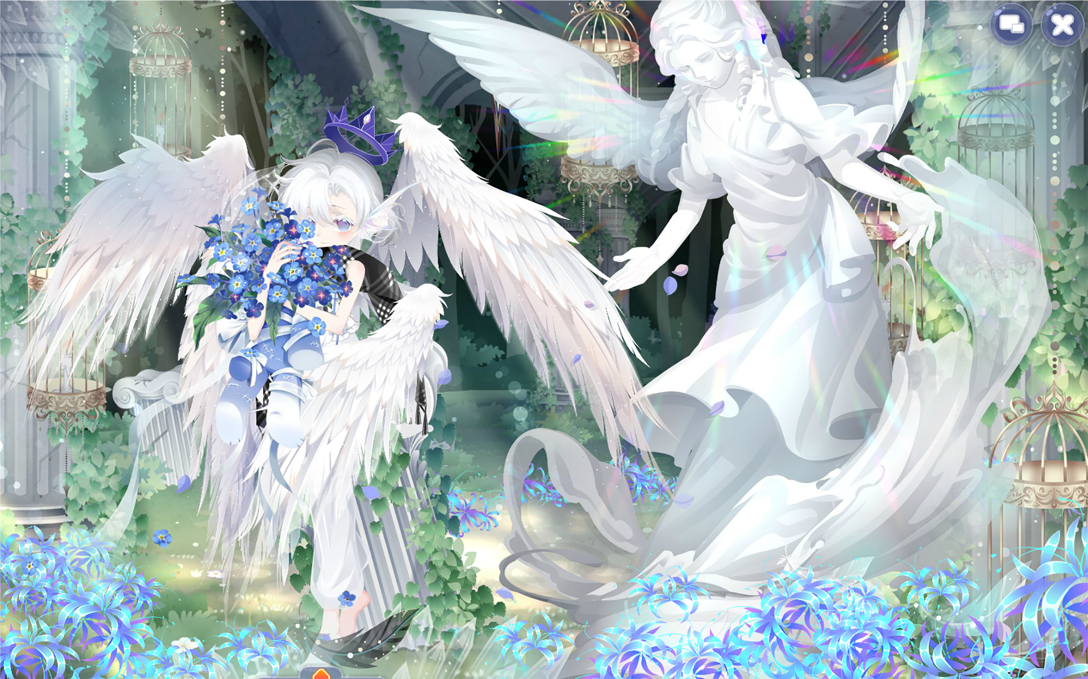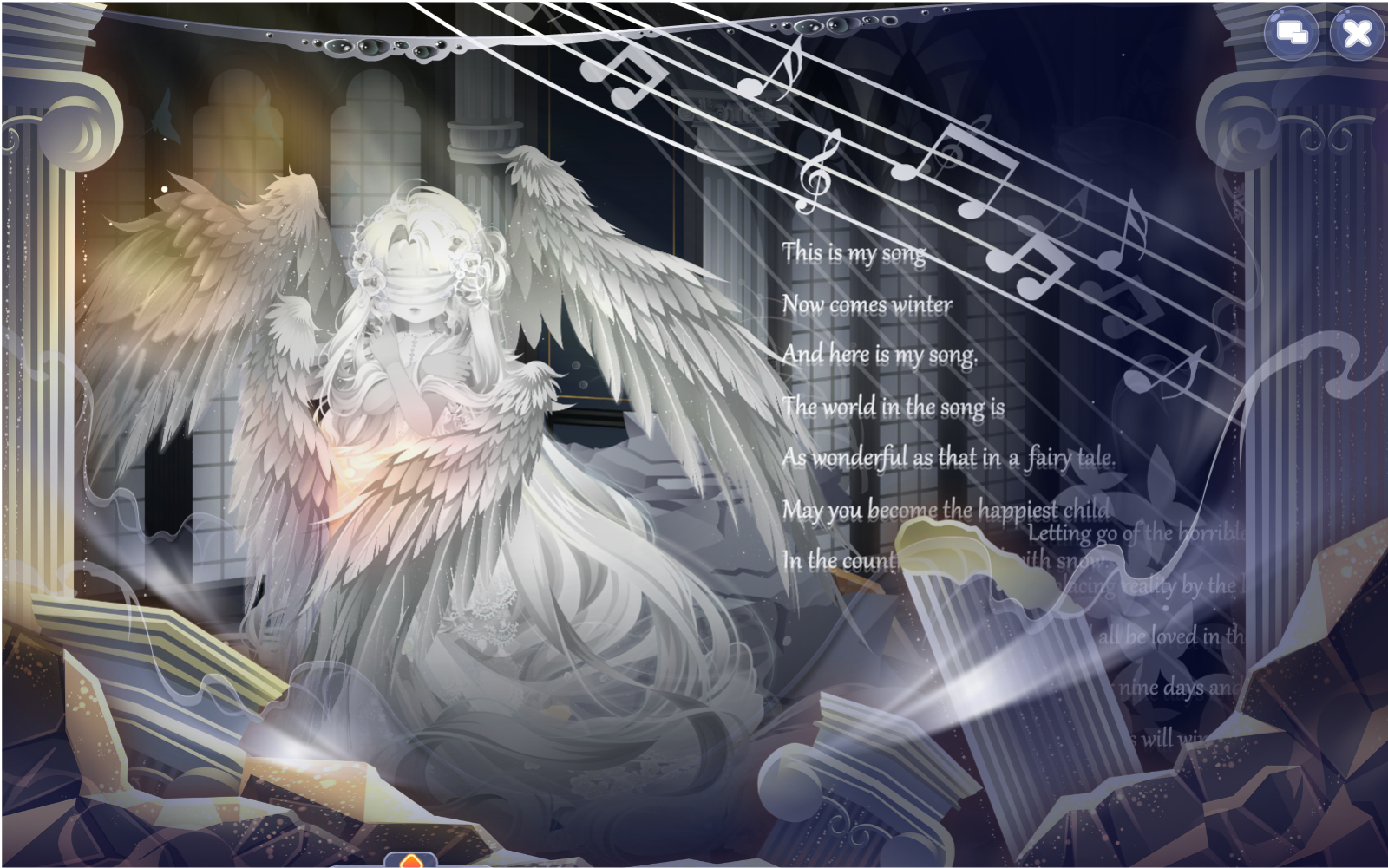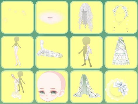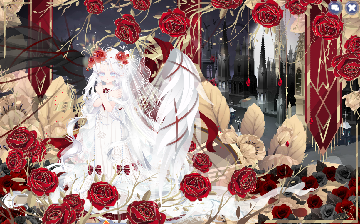 搭配部件:祷歌与泪残柱、祷歌与泪裙、祷歌与泪裙、纯白誓言侧头纱、精灵恋人纱饰、蚕丝袅袅耳翼、英式新娘蝴蝶结、白天鹅头饰、白女巫闭眼妆、祷歌与泪背景、祷歌与泪光效、绣球花篱笆背饰、金狮·云端、凝辉回转连廊、铃语奢享大提琴、雾香星花群、白与风云层、仙·睡莲仙境白莲