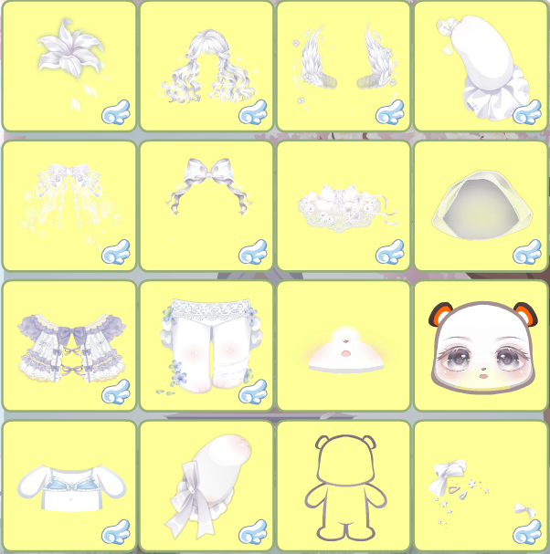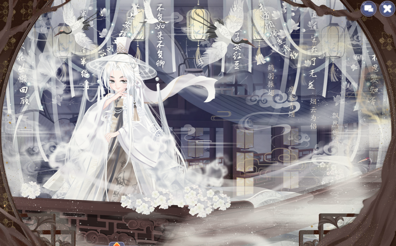 搭配部件:雪弈浮生优雅姿、雪弈浮生备战姿、凤凰金华银发、H.X浅酌斗笠、H.X流风侠客裙裤、H.X流风侠客衫、月宫仙子外套、辟芷佩兰妆、凄雨断魂头冠饰、墨雪浮生掌控、墨雪浮生双龙、挽月流云、妺喜云雾缭绕、鹤羽振翅字句、空笙霜华竹帘、空笙霜华阁楼、空笙霜华香炉、空笙霜华屏风、空笙霜华躺椅、空笙霜华宫灯、曲乐扬州画舫、斋晖客·玄关、风师折丹仙鹤、韶光烂漫·绮罗香、霜降月影景