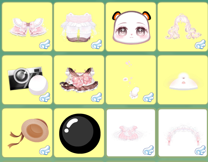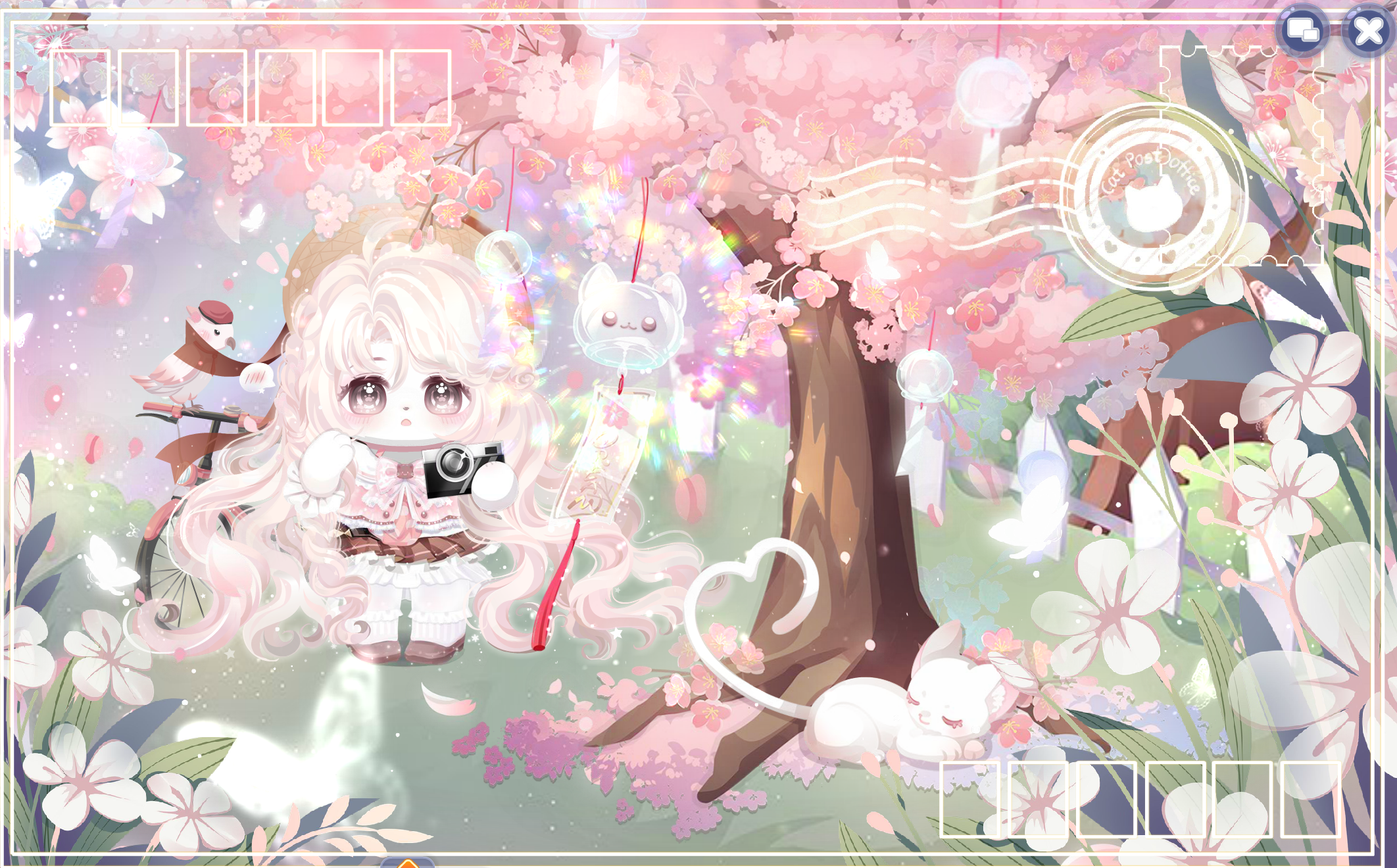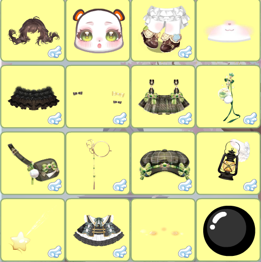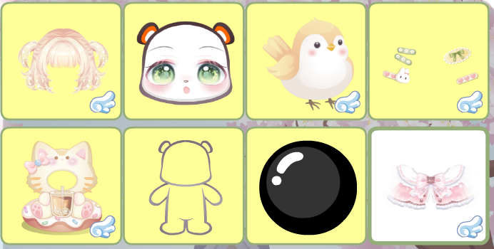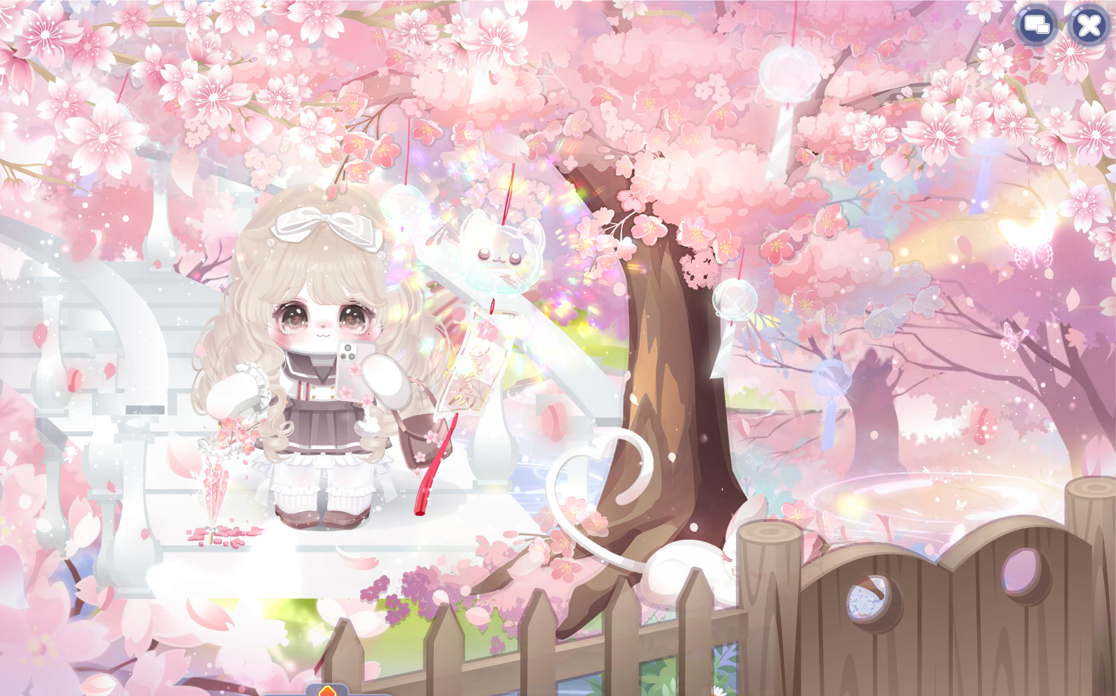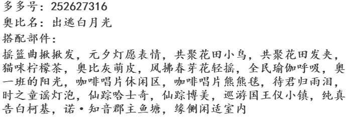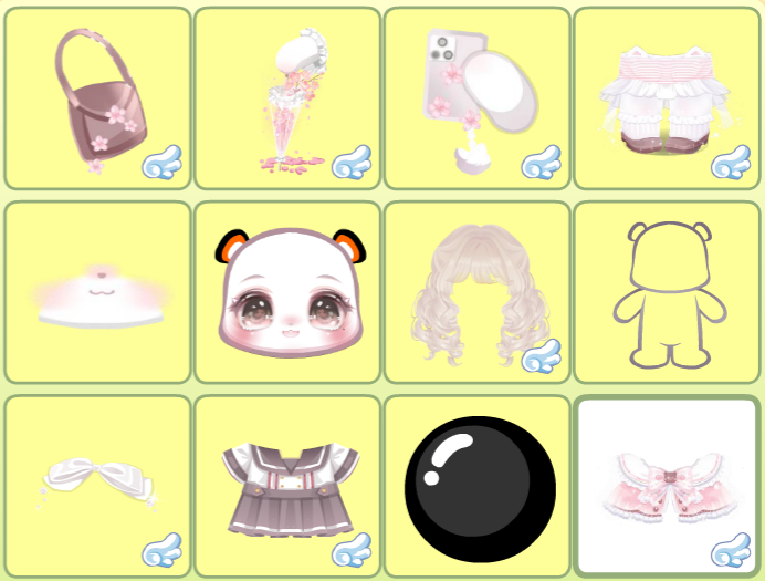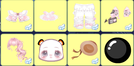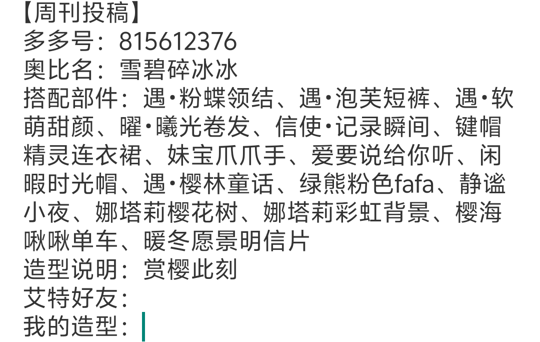 搭配部件:遇·粉糯小包、遇·花漾甜筒、遇·恋恋手机、遇·泡芙短裤、呆萌、吉燕祥驹开心、含苞霓漫发型、奥比灰萌皮、熊熊蝴蝶结、暝·回忆、遇·樱林童话、粉兔之家阳光、绿熊粉色fafa、闲暇时光之门、妤妤猪长楼梯、樱花树森林