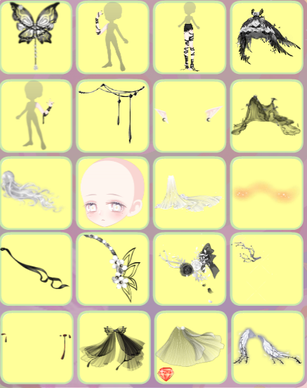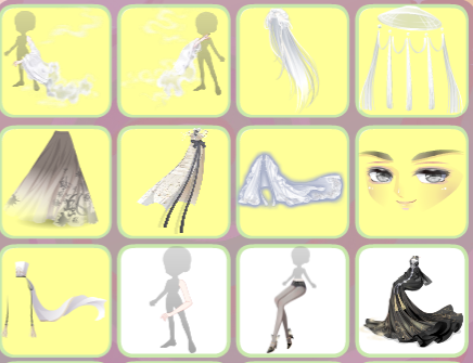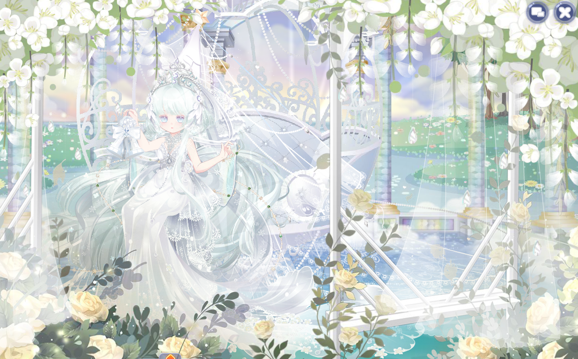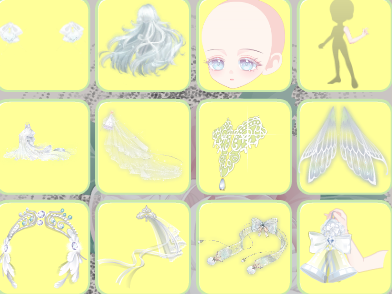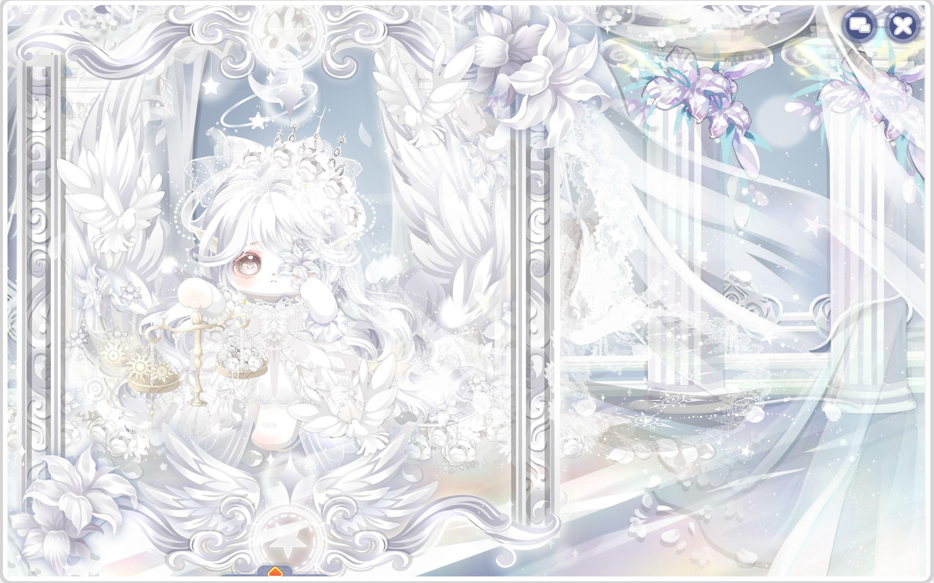 搭配部件:怜·垂怜纱饰、怜·霜雪柔丝、蝶·玉容、潮生梦语左手、祷歌与泪裙、仙女星纱同辉帽、小奥比赴会项饰、蚕丝袅袅翅膀、芭蕾公主头饰、芭蕾公主头纱、铃霜雪鹿蝴蝶结、水晶伴娘铃铛、辉煌金色幻想、金色漫光天际、感恩女神庭院、幽紫迷咒白吊椅、美神诞生百花湖、玉宫清花坠纱