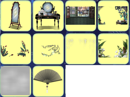 相惜妹妹全身镜、相惜妹妹梳妆台、相惜妹妹背景、乌鹭·对弈、品茗枸杞装饰、一见倾心青梅树、暗香·白秀珠、暗香·杨雨晴景、女魃迷踪烟雾、夜上海香扇