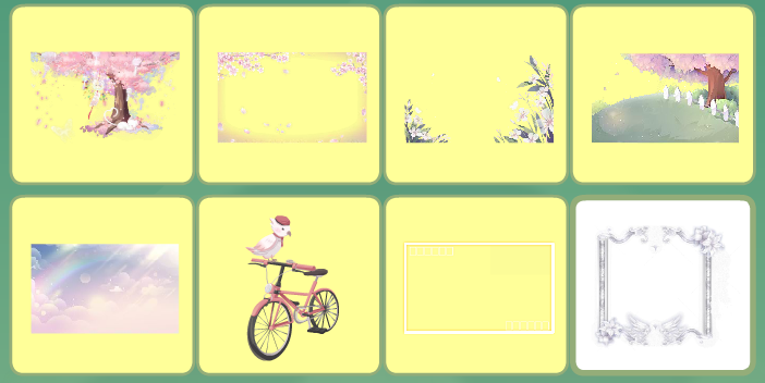 ·樱林童话、守护星愿猫咪、薄巧爱意邮票贴、芝芝柠檬、芝芝乌龙、学院春日景、绿熊粉色fafa、盛夏暖阳倾泻、樱海啾啾单车、浪漫郁金香