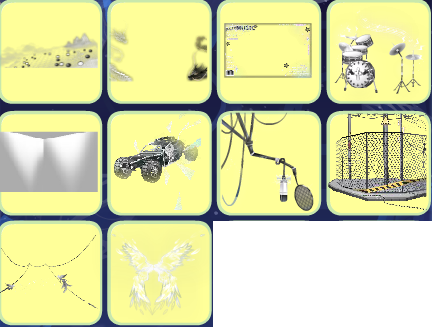 墨雪浮生棋盘、墨雪浮生双龙、音乐杂志封面、鼓韵洛音爵士鼓、天后杂志室、鸦·纵日飞跃、星动配信麦克风、馗·锁寒芒、折翼金乌锁链、隐形守护翅膀