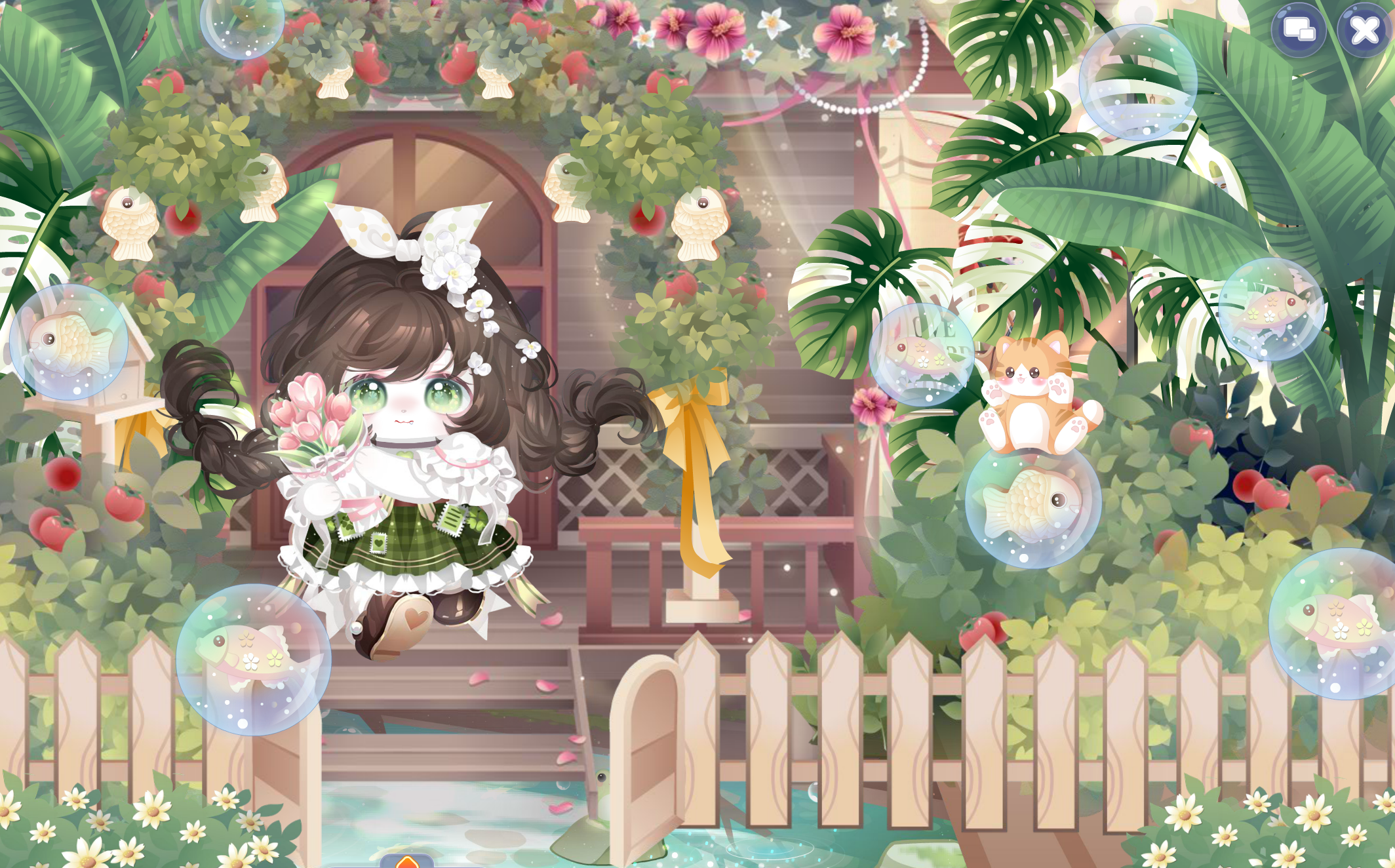搭配部件:怜·薄纱飘带、怜·娇蕊小裙、怜·落絮长裙、怜·碎梦纱伞、金色年华盘发、纯白誓言花束、宫廷御姐站姿、定格新娘蝴蝶结、瞬·时光沙漏拖纱、时光精灵微笑妆、怜·幽境台座、悬光花庭飞鸟、絮语萦年秋千、幻时星尘、守护誓言花束、风信子音乐飞扬、绿野仙境仙蝶群、空净香雾、梦·使者妮娜背景