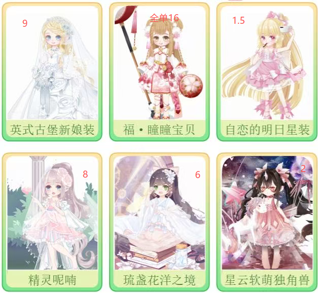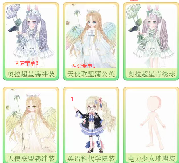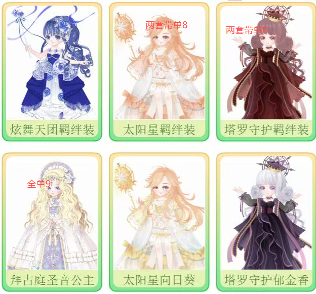 标出很多套装和系列