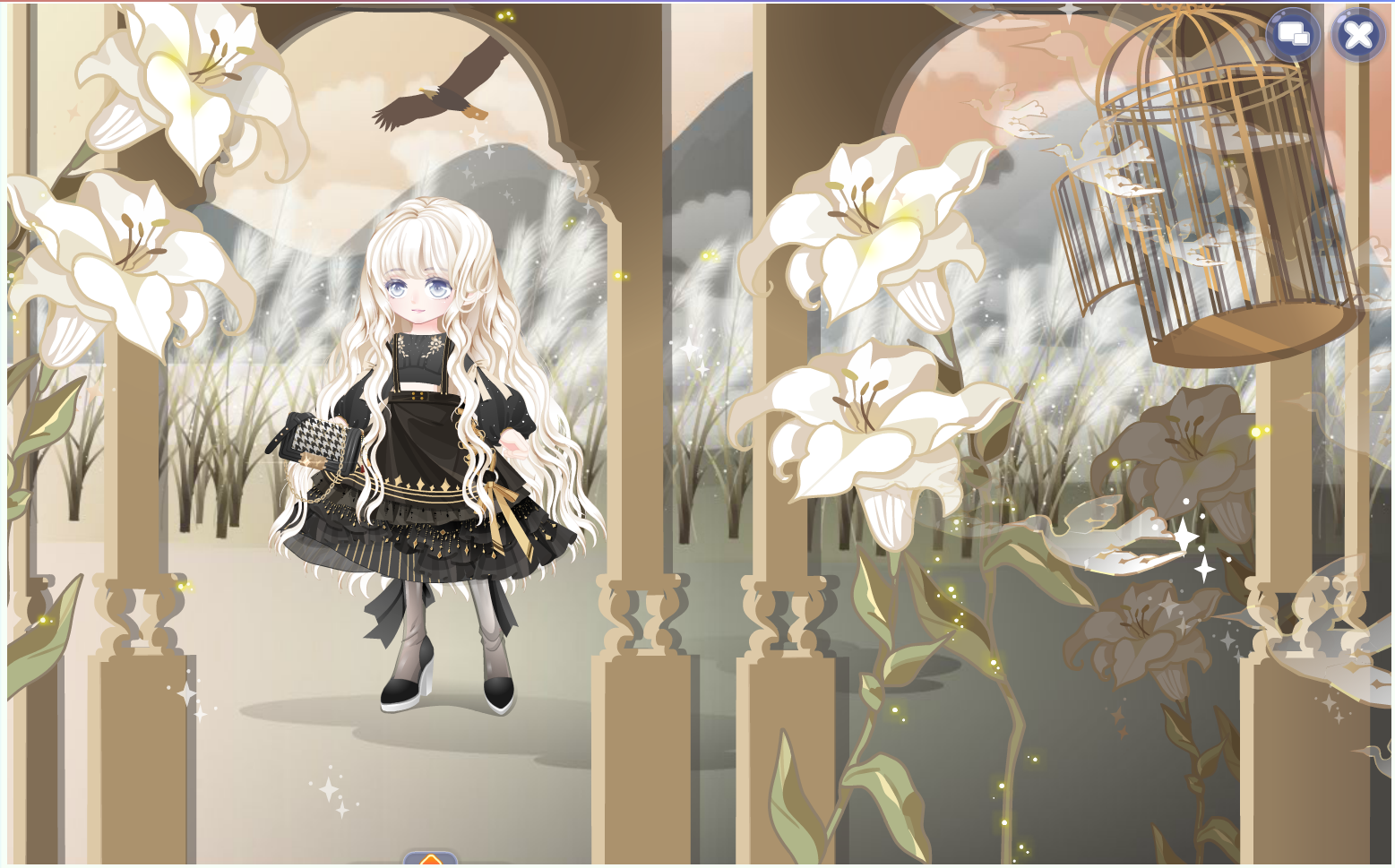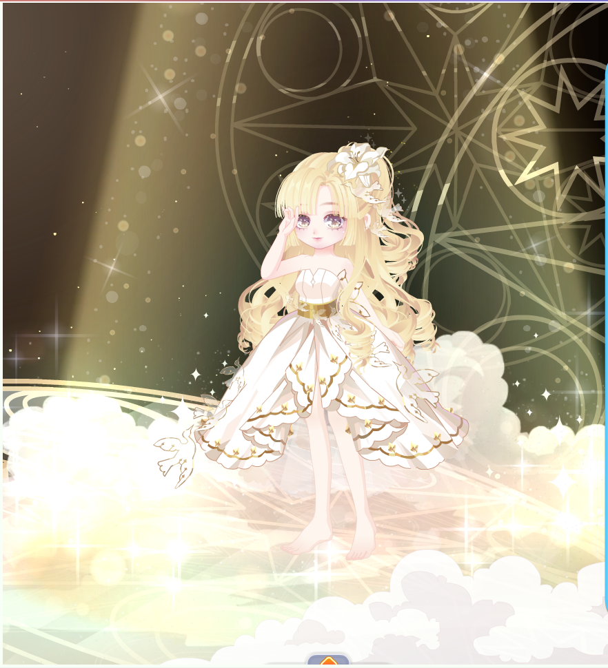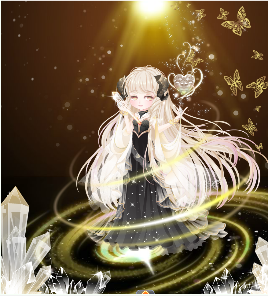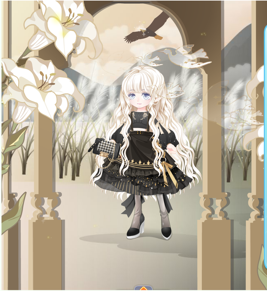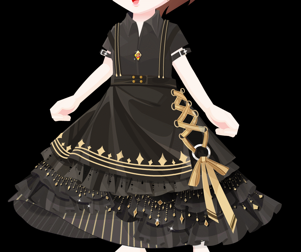 搭配解析:这个头发我讲真的很难搭配表情的。好多大眼好看的表情都会被遮挡住一部分,就会很奇怪所以不推荐你们入手了,因为整套套装都有点金色调在里面,所以这里也出了一个金色的搭配。这条腿子真的不要老盯着脚看,会越看越大的感觉。