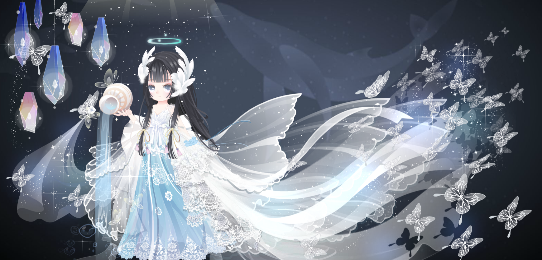 像天上的月亮一样,她召唤的那个守护神,正睁着紫色的大大的眼睛望着她。