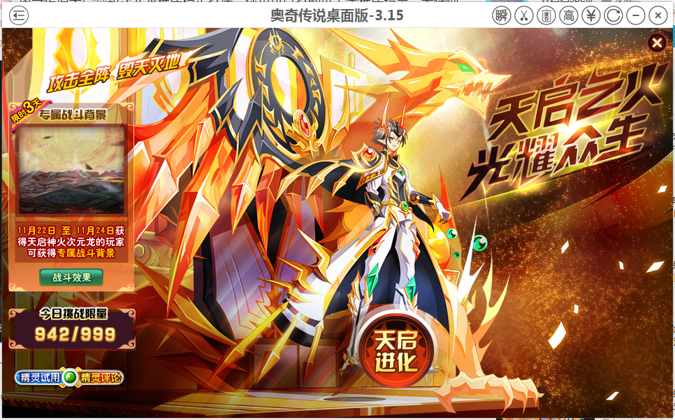 前几天把天启火次过了,现在天启暗龙就最后一关了(没练昆仑)