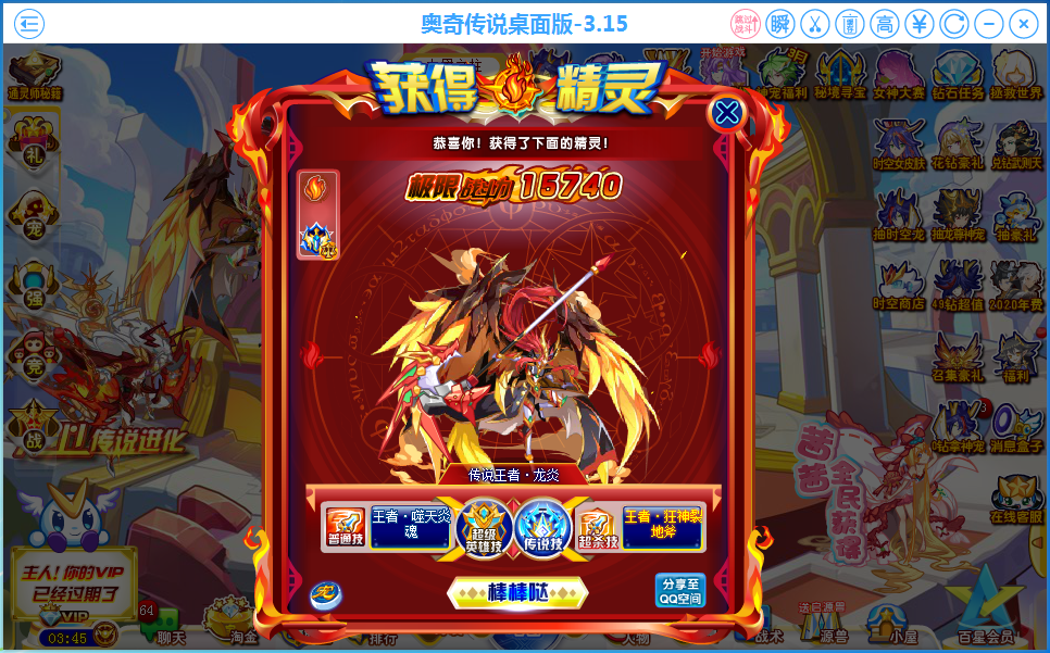 今天过了传说王者龙炎(没用啥高强精灵,全程女帝服药诺雅)就用一次以撒
