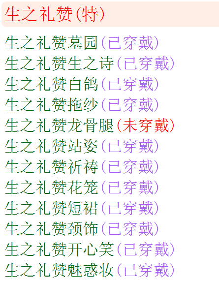 生之礼赞部件一览