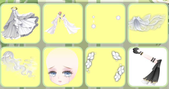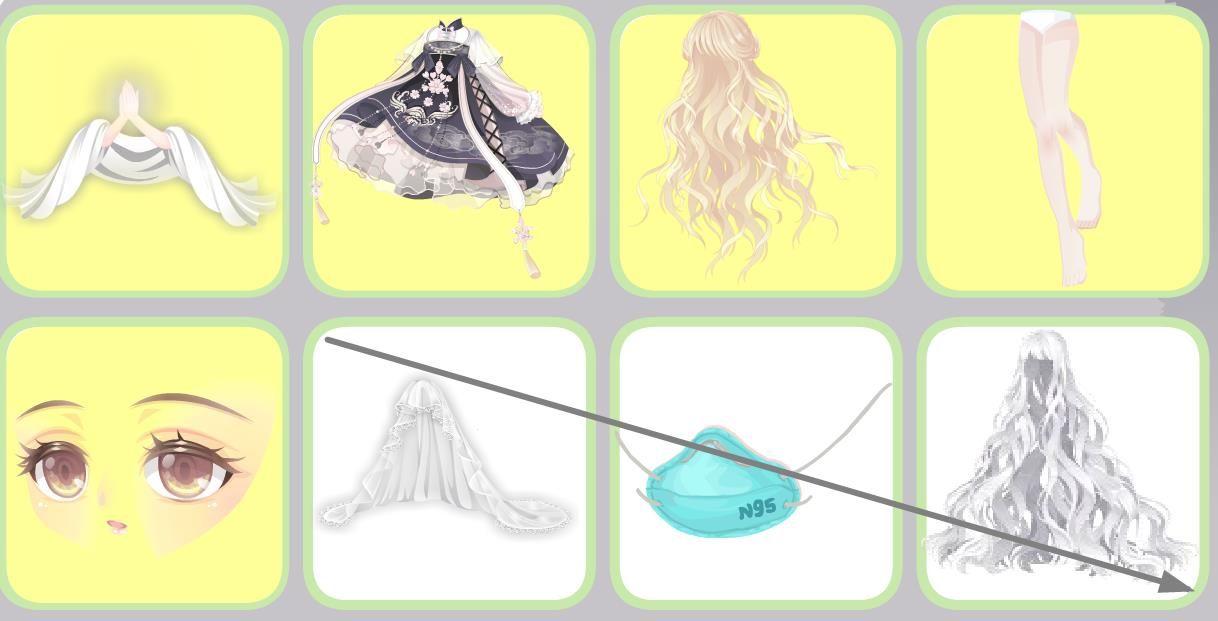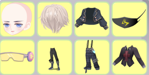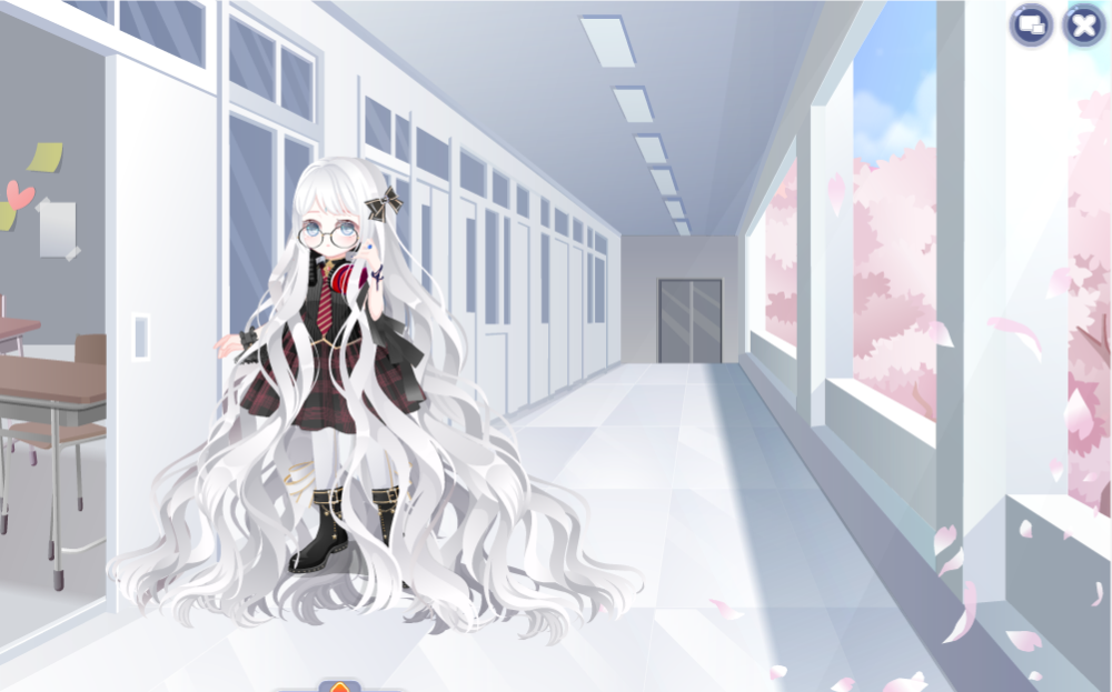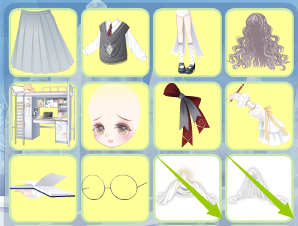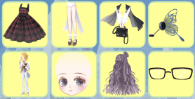 格子吊带裙,闰年神话长发,觉醒黑古拉衬衫,涅槃重生精灵,英语课代表眼镜,七夜蓝歌左手,魅甜心右手,探险帅气蝴蝶结,鹿小韩的耳机