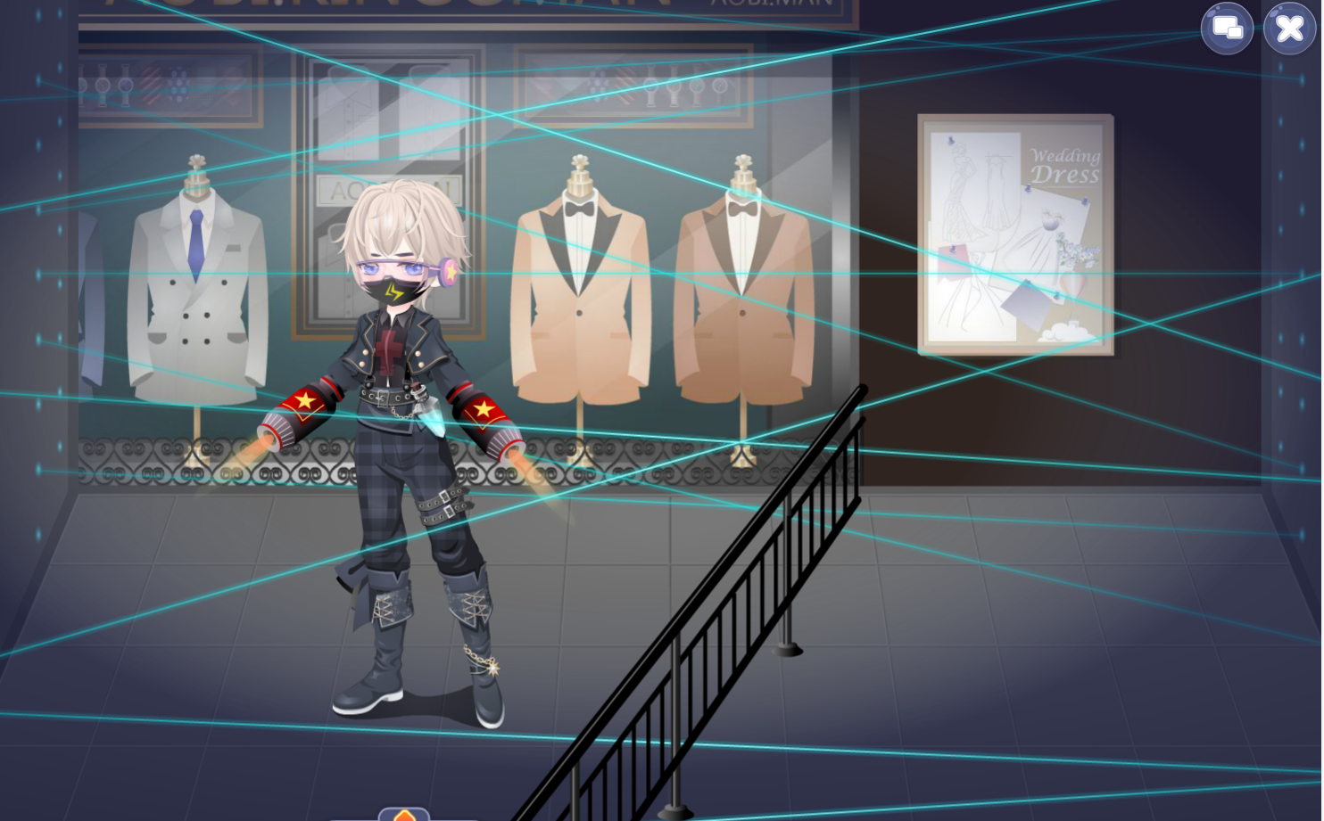 双手戴着特殊材料制成的手套可以轻松融化任何阻碍他的东西,脸上戴着用于通话的眼镜和防止被人认出的危险口罩。作为间谍的他平时以学生身份呆在学校,然而就在前几天突然收到任务,需要在深夜秘密潜入第二天的服装新品发布会现场窃取服装设计图。作为一名优秀的间谍,即使是在如此严密的安保设施下,也能十分完美的完成此次任务。
