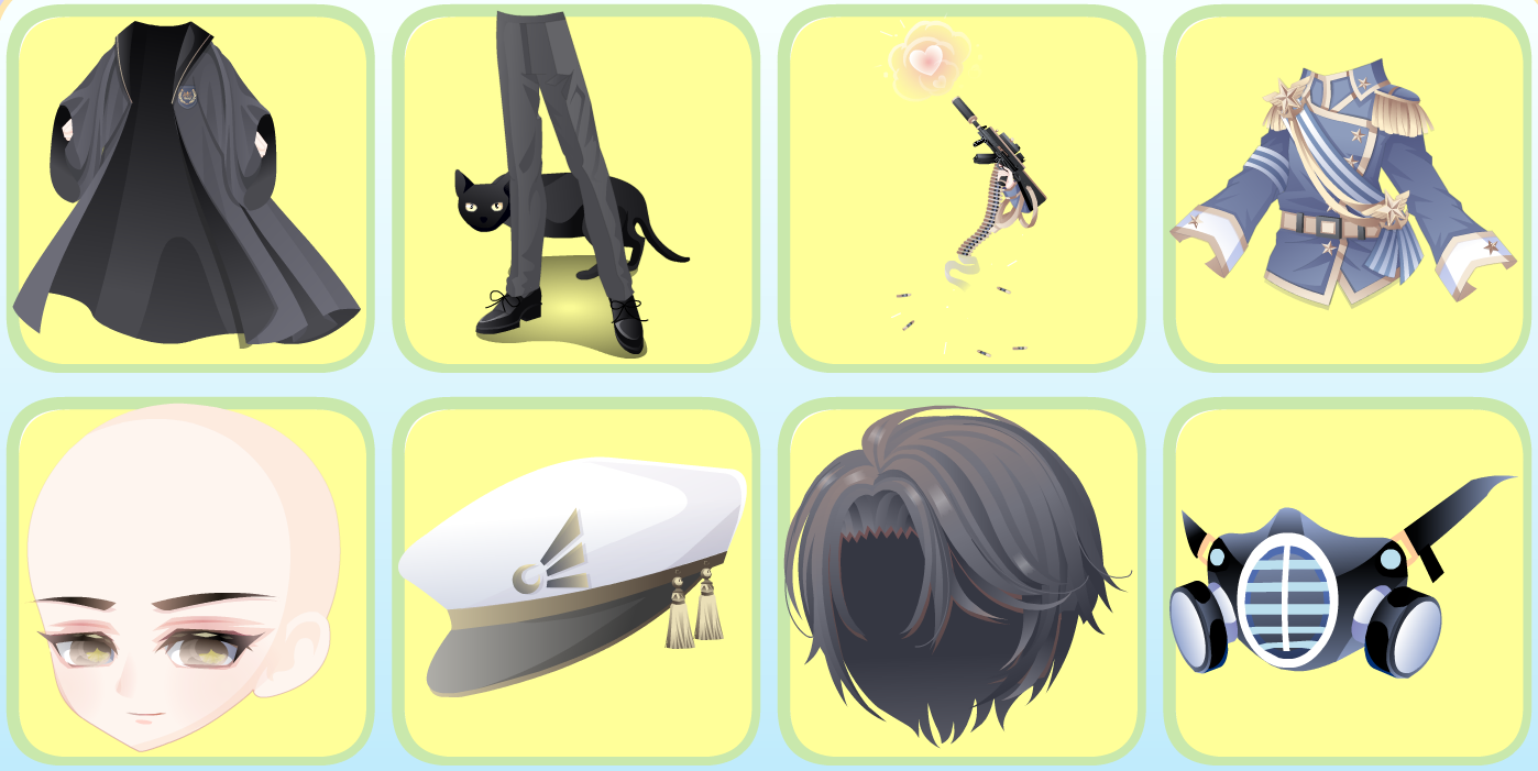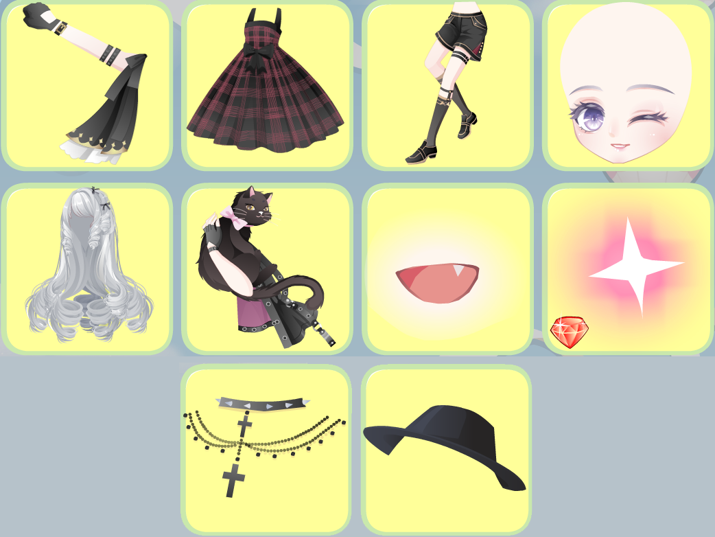 1-1 腹黑间谍右手/1-2 格子吊带裙/1-3 觉醒黑古拉裤子/1-4 光影起源眨眼妆