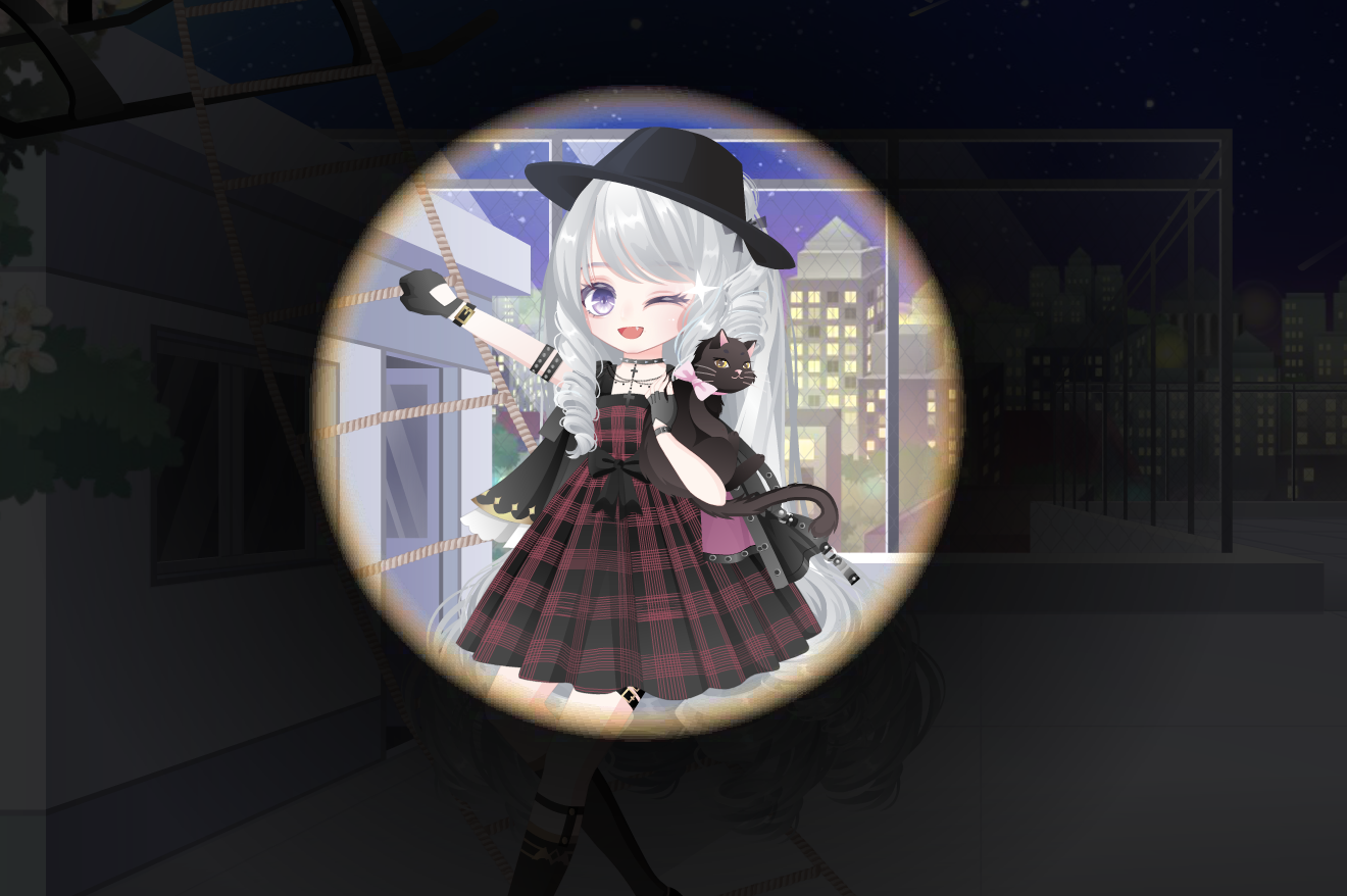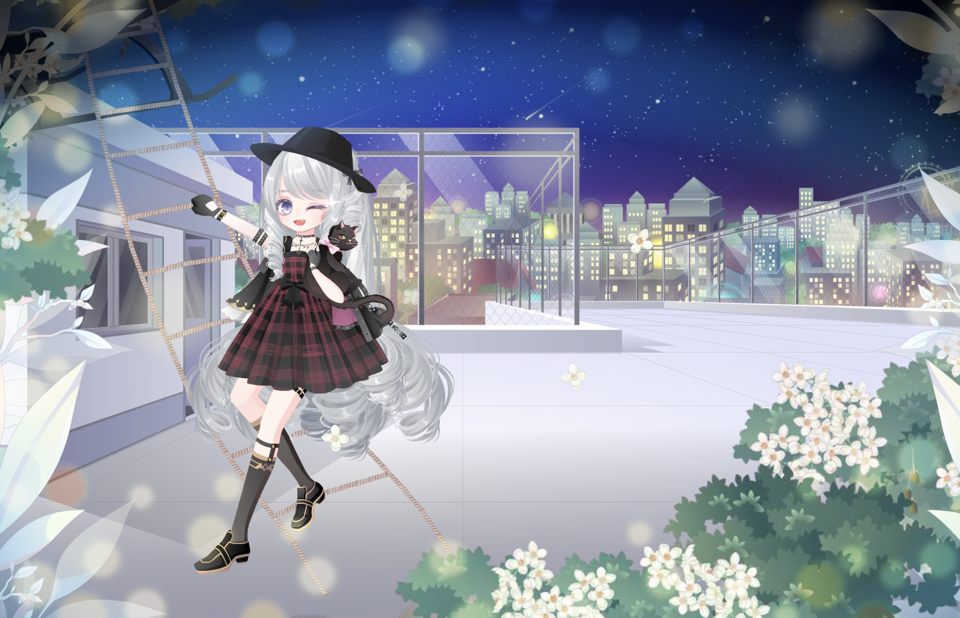 格子吊带裙 学姐皮书包 生之礼赞开心笑 时光精灵微信妆 黑殿冰皮小皮鞋 民国青年礼帽 哥特choker项圈 熔岩星入魔秀发