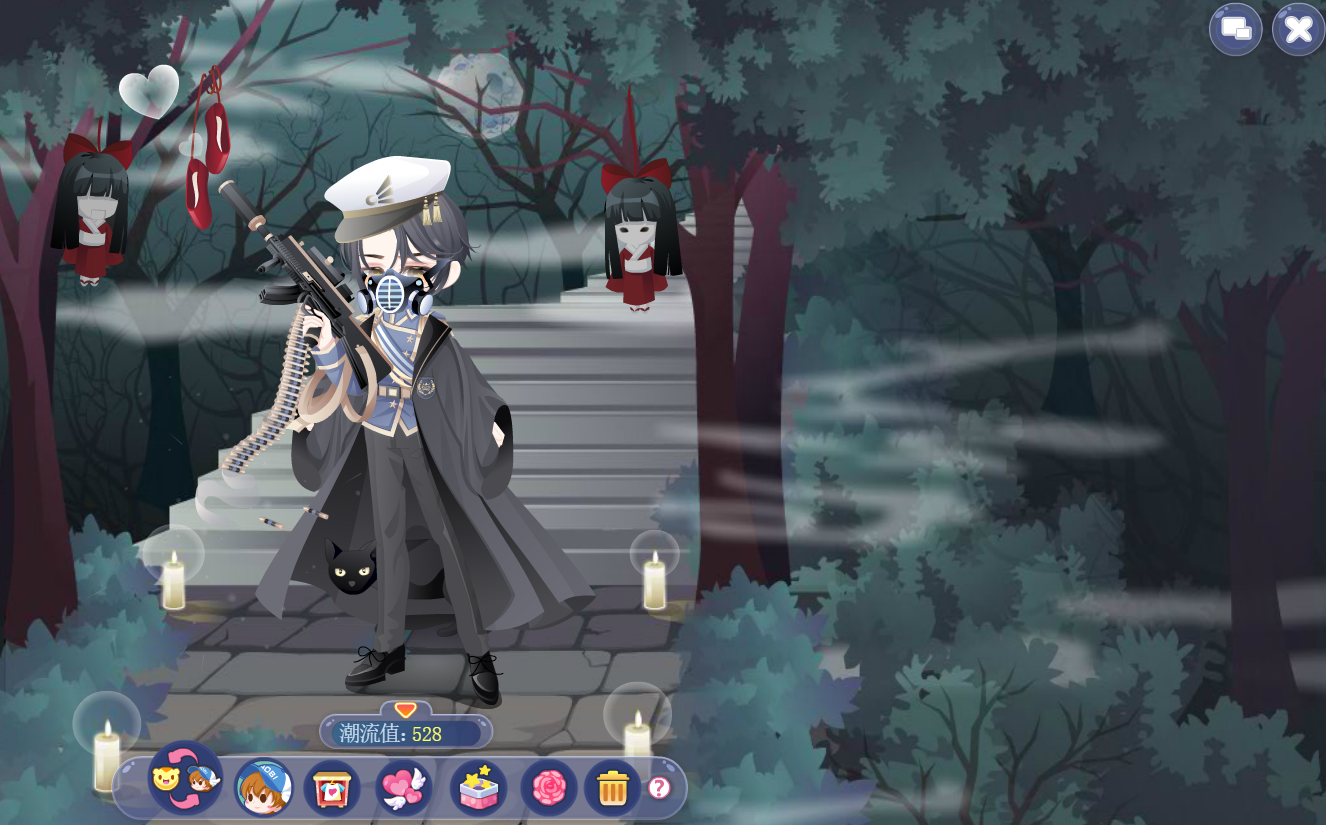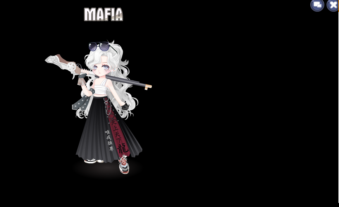 搭配部件:不良制服长裙 西部牛仔步枪 男子汉绷带 夜南王子长发 秋季街舞老爹鞋 哥特乐手表情 黑帮少主单手套 黑帮少主耳钉 黑帮少主眼镜 11号饰品 全屏魔力纯黑景 黑手党标记