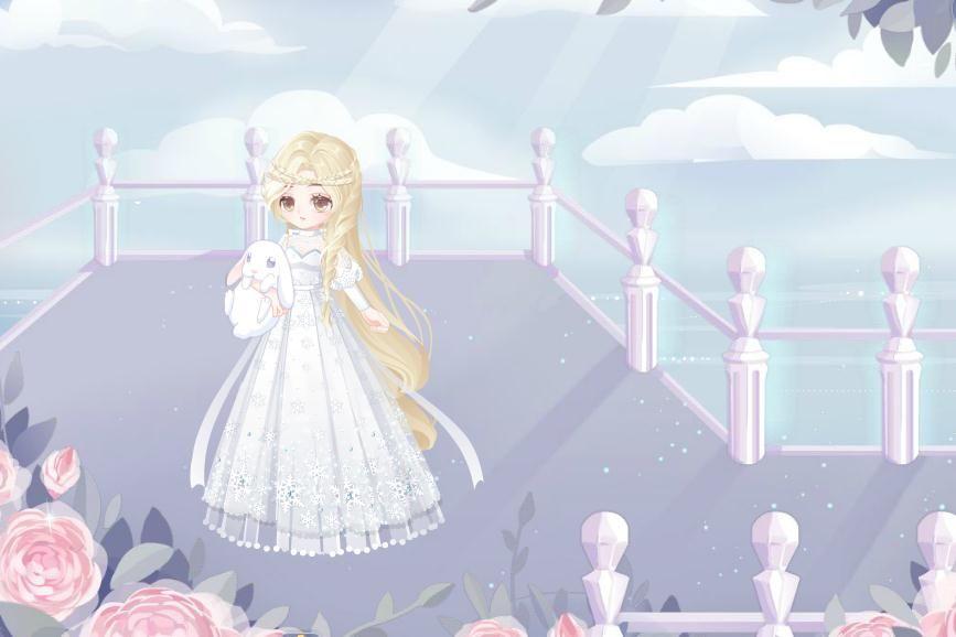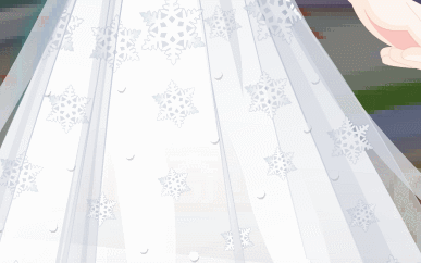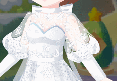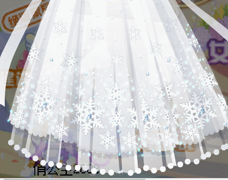 这条裙子纯白的,超好看!泡泡袖,束腰裙,裙子下摆有很多冰晶,真的好好康啊!!!【穷词】