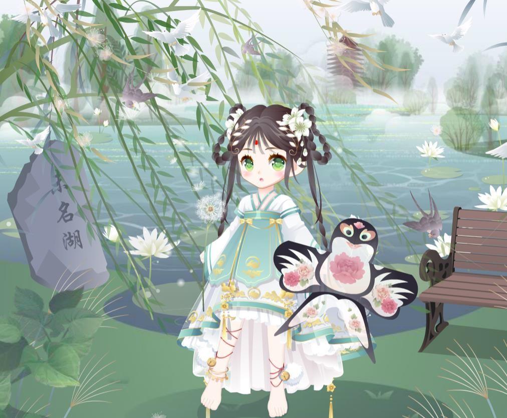 然后这张按照“草长莺飞二月天,拂堤杨柳醉春烟。儿童散学归来早,忙趁东风放纸鸢。”诗句搭配的,腿子想用飞鸟奔跑腿来着,依旧是快捷没收到,发帖没收到,也不是很满意这张搭配,和心里有点出路,强迫症