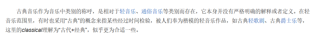 值得注意的是,以下内容不在“古典音乐”范围内: