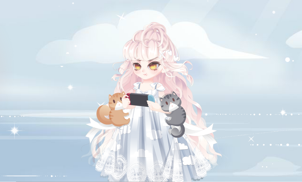 是在打游戏的女鹅!粉色居家发真的超级可爱,慵懒不失俏皮!炸毛妆看起来倒不是在生气,多了少女的娇憨,游戏机两边的猫猫更添了居家风,整个搭配看起来休闲,礼赞站姿也超级可爱!睡衣裙和微光背景同色系让人舒服,衣服上的蕾丝看起来真的十分精致!这种简单的搭配看起来也能让人眼前一亮!