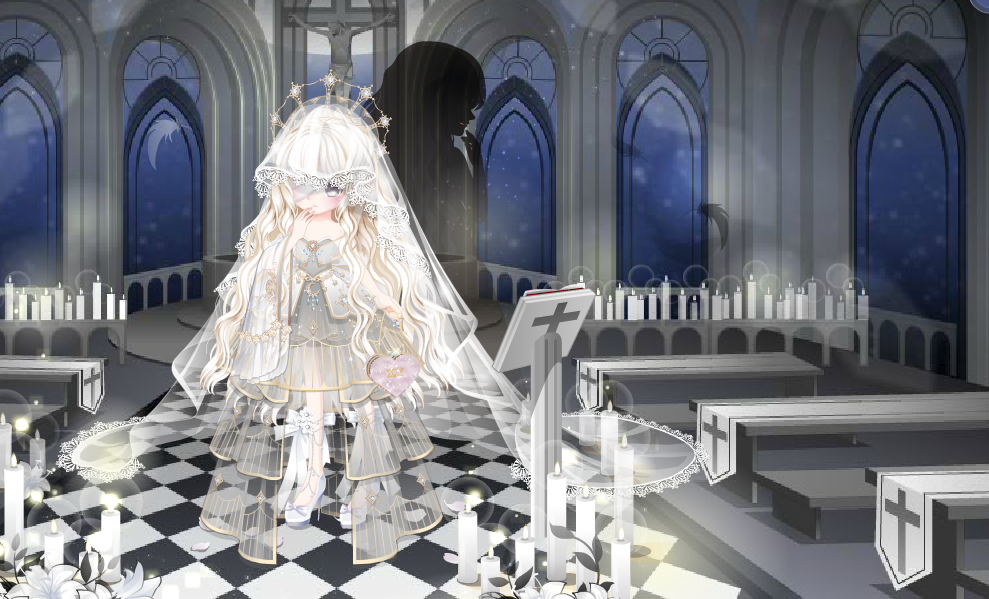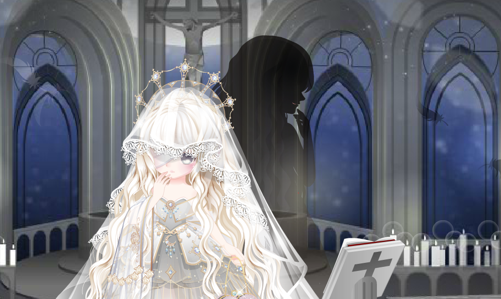 “灰色的教堂里,金发少女思考着上帝旨意...”