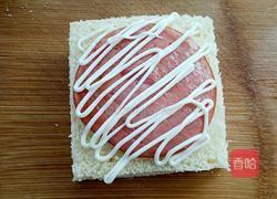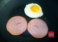 2.平底锅刷少量油,把鸡蛋煎熟、火腿稍微煎一下。