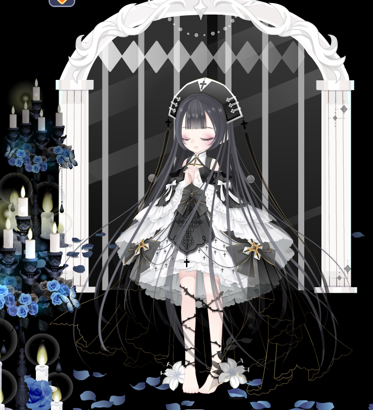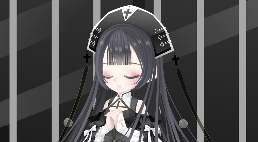 ·修女的裙子无时无刻都是我的心头好,太爱他了,超级好看,在这一风格的题材上面很难超越。发现表情闭着也很nice,于是就截了一张。大概是一个在祈祷的少女。
