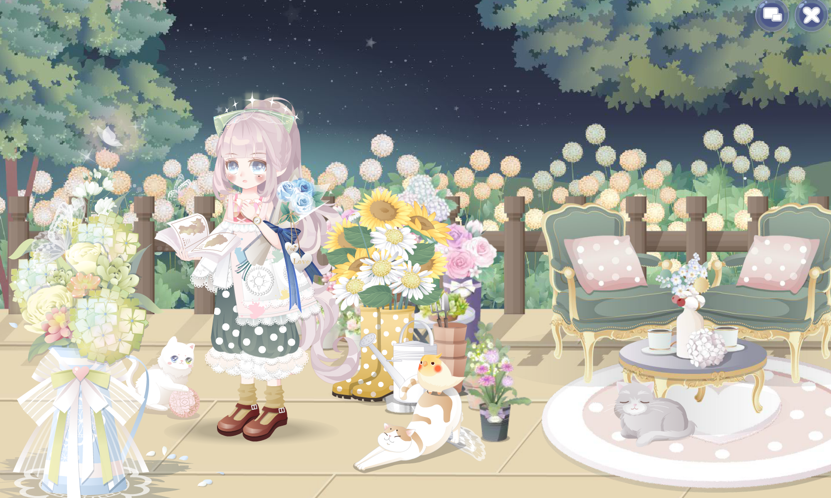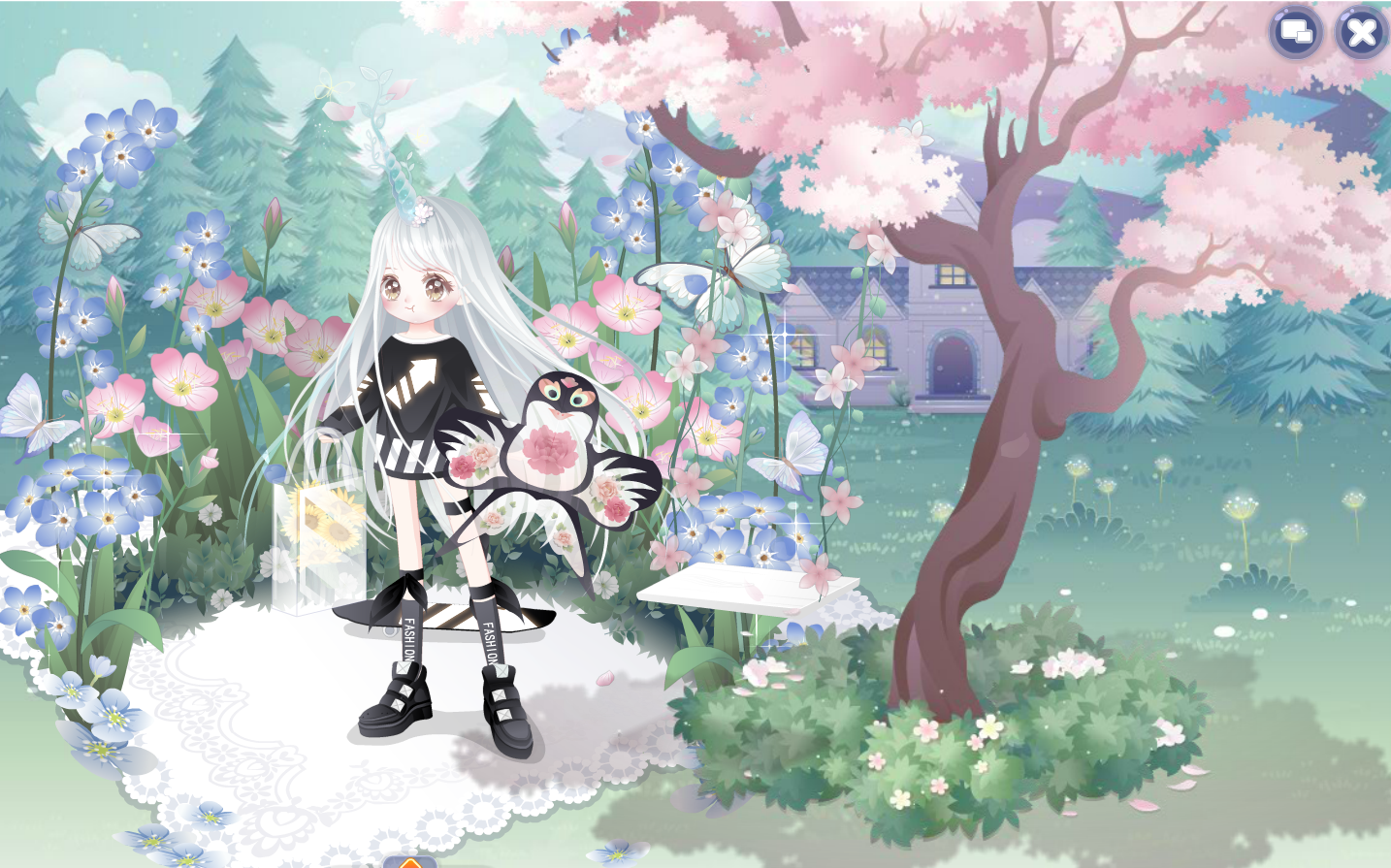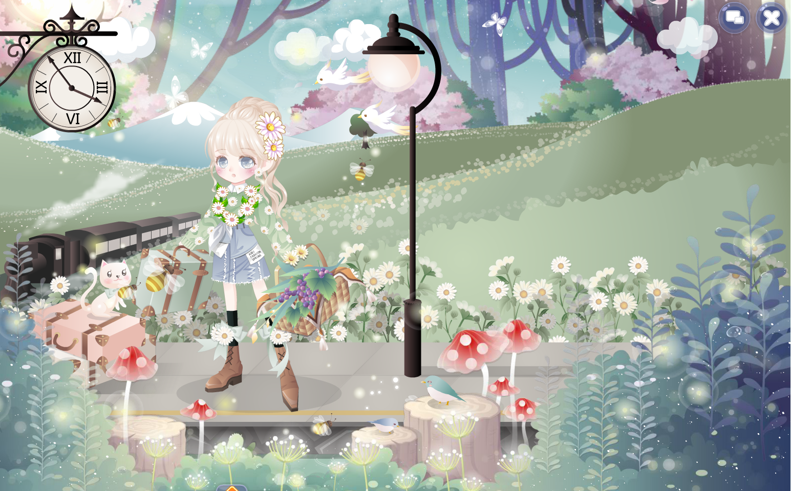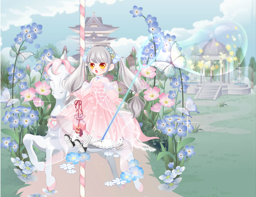 搭配部件:星光捕捉网 樱花和风手袋 外出游玩公主裙 噩梦终端小皮鞋 灰色浪漫双马尾 桃乐丝梦幻落花 极光粉天使美妆 黑莲小公主头花 梦幻蝴蝶结 游玩旋转木马 万物复苏花与蝶 春暖花开公园