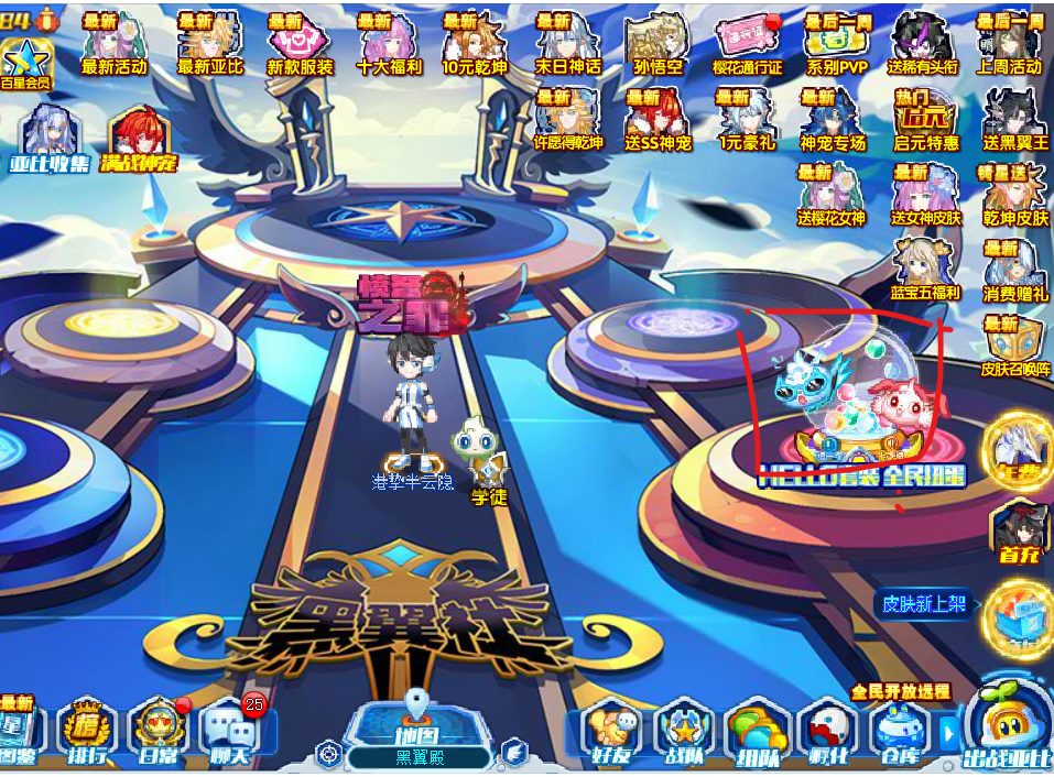 小伙伴们可以到下方的地方抽衣服,虽然没什么用(嘿嘿额hi),搜索黑翼殿即可