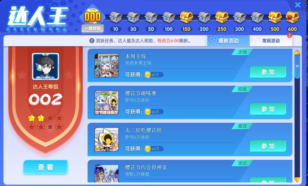 达人王,俗称日常,这边可以获得装备,抽奖券,还有星币碎片,奖励非常丰厚,建议经常肝这个