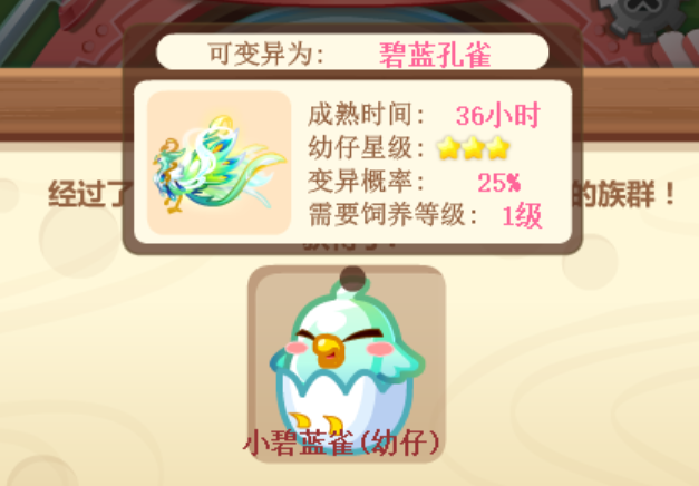 今天又是填宠物鸭鸭的一天,这是第三次出碧蓝孔雀了。此配方再次实锤。