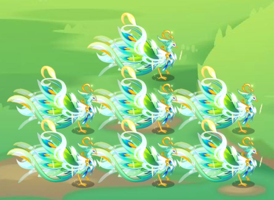 好像只是四只笨笨鸭鸭加一只其他动物的时候,会出碧蓝孔雀之外的鸟类?上次出彩焰飞雀是四只鸭鸭加一只猪……