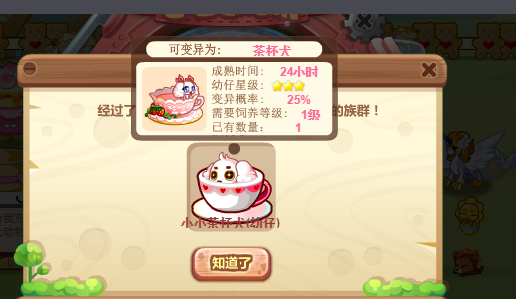 我合出来公的了,用黑白啸风犬,扫帚鸡,金翎孔雀和每日抽奖里的奶牛合出来的