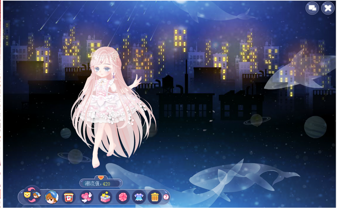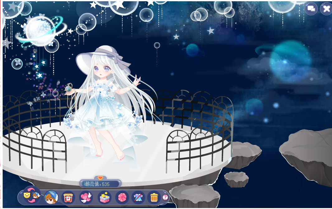 少女一身蓝裙,独自站在理想的彼岸,在星空下,蓝色的眼睛闪烁着小星星一样美丽的光芒