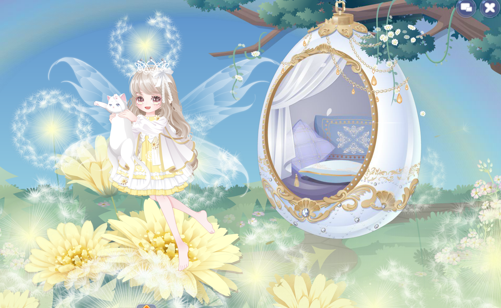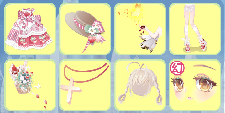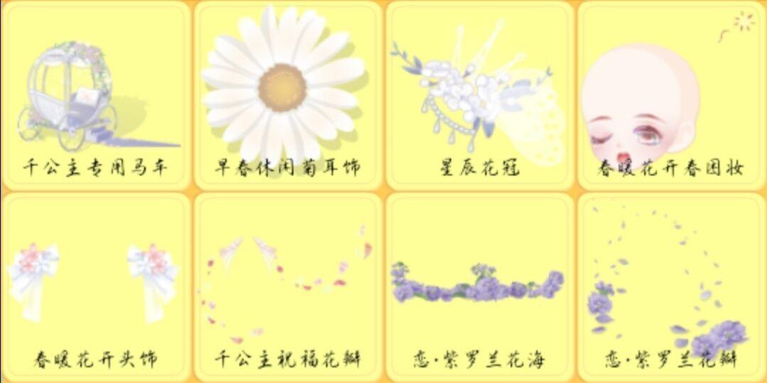 千公主嫩黄短裙、小红帽新娘美妆、软萌抱猫猫、生之礼赞开心笑、花梦萤蝶纤长腿、洋桔梗黄翅膀、温柔插画师长发、闪耀珠宝发冠、珂赛特少女花饰