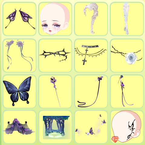 荼蘼花开长裙、流辉映逝美颜、觉醒塔利亚高跟、爱之名浪漫卷发、飞鸟少女头饰、蜕变星左手、蜕变星右手、夜幕黑翼、心之牢笼钥匙、惊蛰雷出闪电