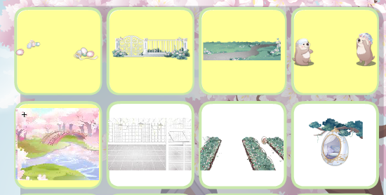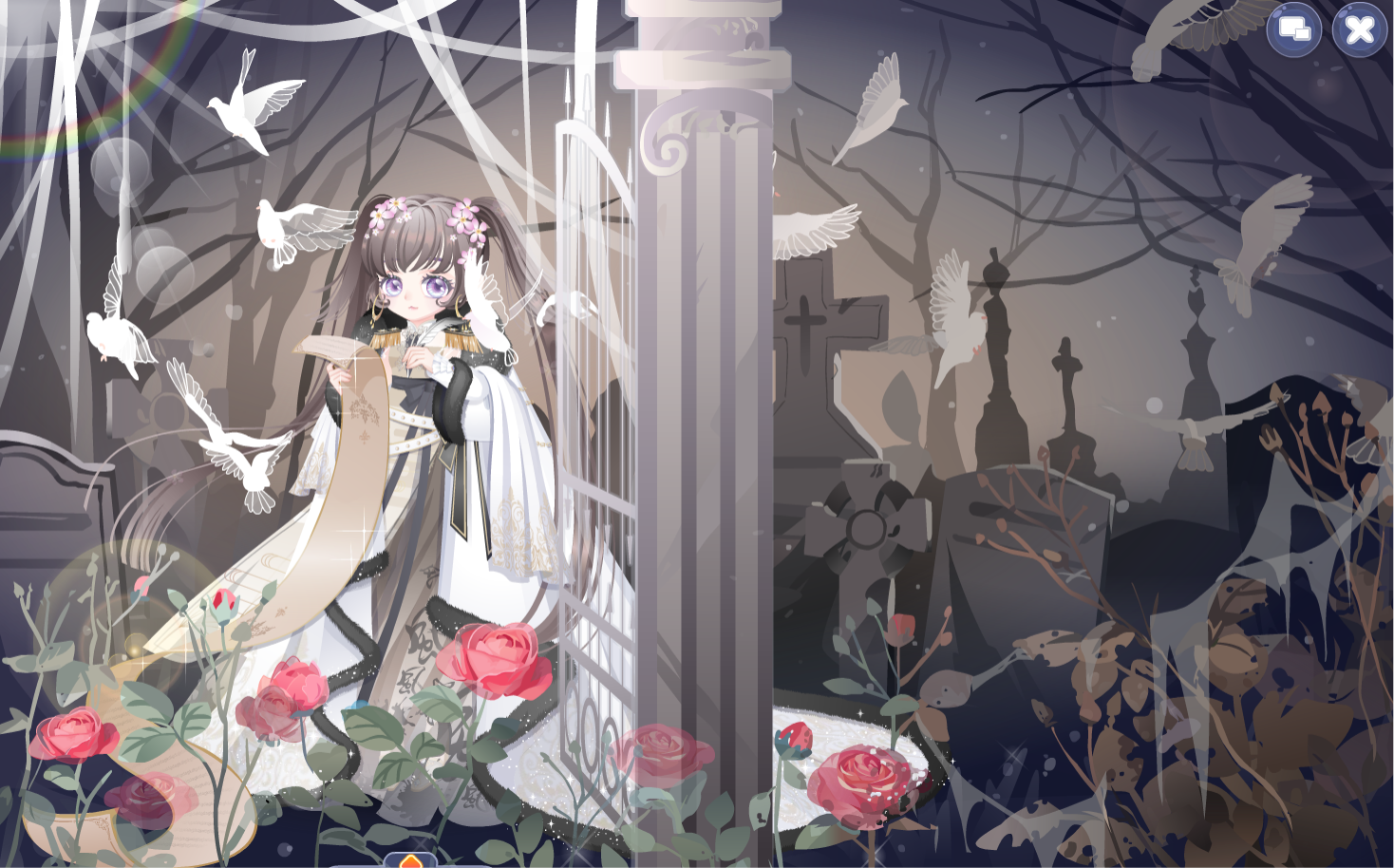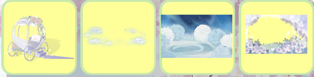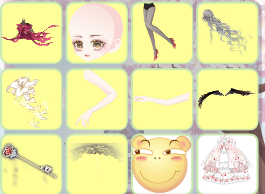 花泪之颜、飞蛾扑火掌上花、荆棘女王之冠、春季温柔黄辫子、聚会少女礼裙、爱心满满纱绷带、海适花闲左手、蜕变星天使赤脚、绽放的枯萎相框、睡美人荆棘玫瑰、睡美人睡棺、云端全屏背景卡