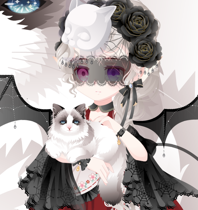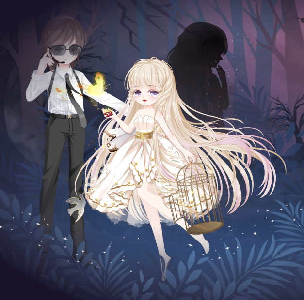 搭配部件:折翼蝴蝶袖,画皮魅惑之泪,光影起源辫发,蜕变星天使鞋,花间异憧憬发饰,心之牢笼,莉莉丝契约项链,莉莉丝契约面试饰,摩卡小影黑蝴蝶,美狄亚皇后权杖,美狄亚皇后执杖,美狄亚皇后抚发,美狄亚皇后长裙,千年花妖秘景,幽暗旋律胸针,8号饰品,迷雾境地之树,童话森林灌木丛,全屏魔力纯黑景,环境国度寒夜树