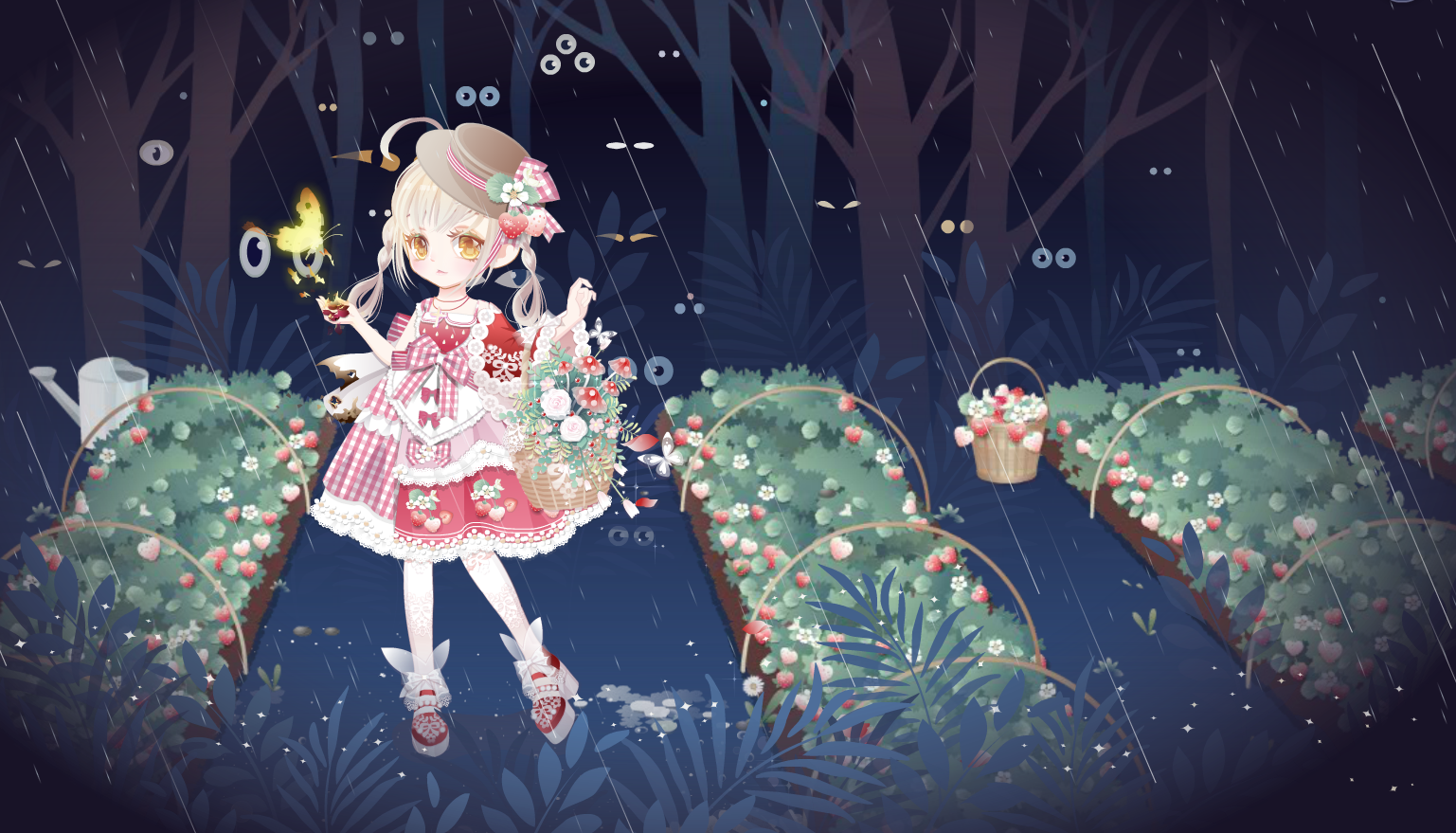 春天草莓园,清明凄美落雨,清明凄美花瓣,神秘精灵夜之眼,
