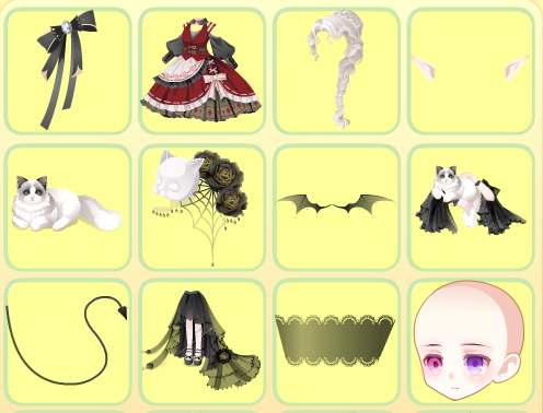 搭配部件:斯丁格管家头饰、小红帽暗黑裙、光影起源辫发、纪元幻境精灵耳、魅·奇异甜心猫、魅·女王头饰、魅·公主翅膀、魅·诡怪公主猫、魅·诡怪公主尾、魅·诡怪公主腿、梦魇幻境面纱、幽灵女仆颜、古堡人偶密室灯、古堡人偶鸟笼、古堡人偶破木偶、古堡人偶破框、古堡人偶楼梯、王妃盛婚后花园