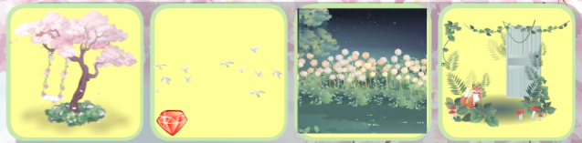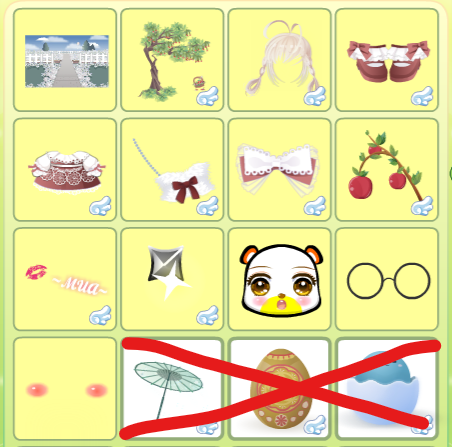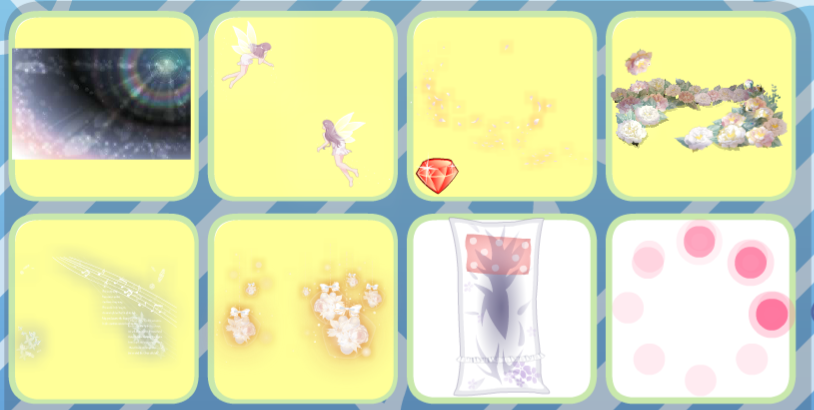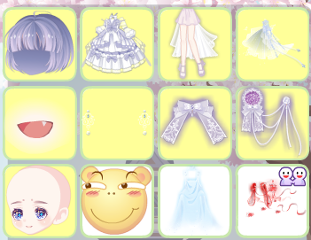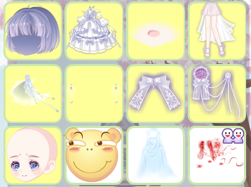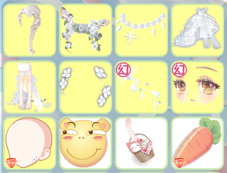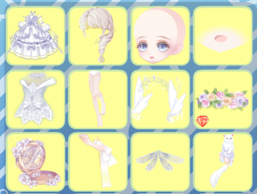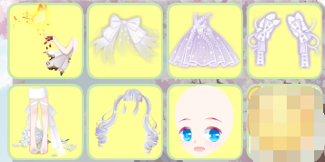 彩蛋小精灵短发、千公主淑女裙、噩梦终端惊讶嘴、星辰俏皮、海适花闲头纱、天竺莲月耳饰、薰衣花嫁蝴蝶结、薰衣花嫁花球、梵花天启仙梦妆、爱之羽边框、花河虹云蝶影、花河虹云幻纱帘、耀·偶像舞台云、薰衣花嫁背景、花嫁薰衣草、柳宿宫廷妃子蝶