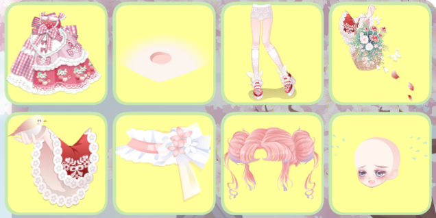 摘草莓的篮子、可爱草莓萝莉鞋、可爱草莓萝莉裙、花泪之颜、飘零之花双马尾、噩梦终端惊讶嘴、早春樱花透明伞