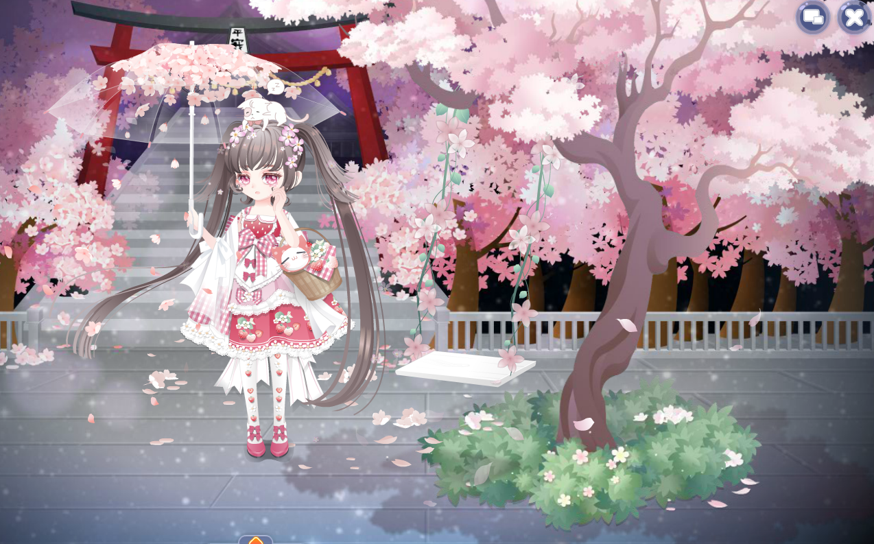 造型说明:樱花盛开,花瓣落在少女的身上,打着伞想躲开这美丽的凋零