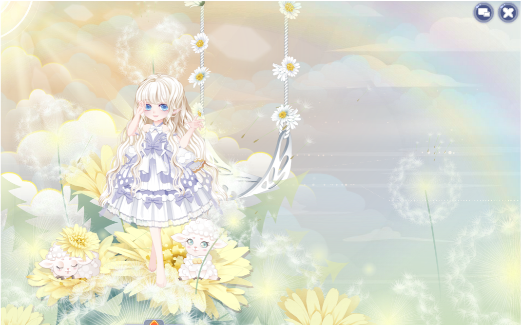 搭配部件:千公主淑女裙、千公主遮阳伞、外出游玩公主装、睡美人卷发、古堡人偶挡光手、花梦萤蝶小触角、蜕变星天使赤脚、遗失梦境左手、奇幻精灵翅膀、回忆蒲公英小羊、彩虹回忆蒲公英、寅时破晓阳光、微光万里、黑小耶巫女云景、纯真花少女秋千、萌黄心动云朵
