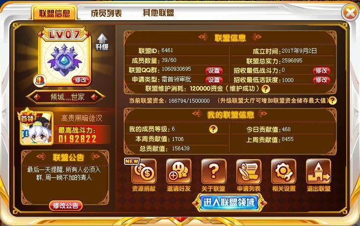 这里是倾城世家,我们联盟的id是6461,招收18w以上的大佬,只要干干日常任务,确保每周12w自己就行了