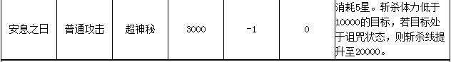 安息之日:超神秘系惯性的斩杀技,斩杀线比较低,即使是诅咒也只有20000的斩杀线所以无论是在pvp还是pve这个技能都算废掉了