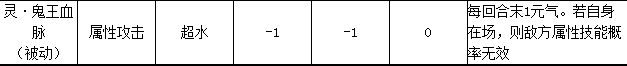 灵·鬼王血脉:自身在场敌方属性技概率无效,作为通灵酒吞的自带技能概率封属性还算不错。