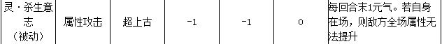 灵·杀生意志:又是一个通灵被动,全场禁提属效果很不错,有效防止对方提升属性,也可以把通灵者留到最后当封属性效果